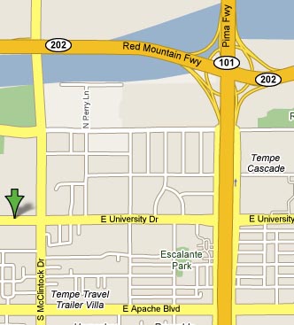 From the Loop 202 Westbound: Exit at Dobson Road (Exit 10). Turn left onto Dobson Road and proceed 1.2 miles. Turn right onto University Drive. As you pass McClintock Drive in 2 miles, the STAR Center will be on your right in less than a quarter of a mile.