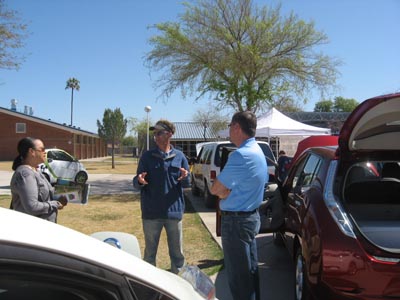 "We had 4 Teslas at the Carl Hayden High School Science Fair today, 2 Leafs, 1 very Smart-ED, 1 Citi Car, 1 tEVan and 1 S-10 Lithium conversion. Not to mention a Volt. It was a very good EVent for the EAA." - Jim Stack