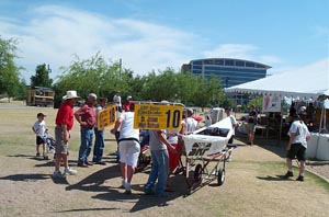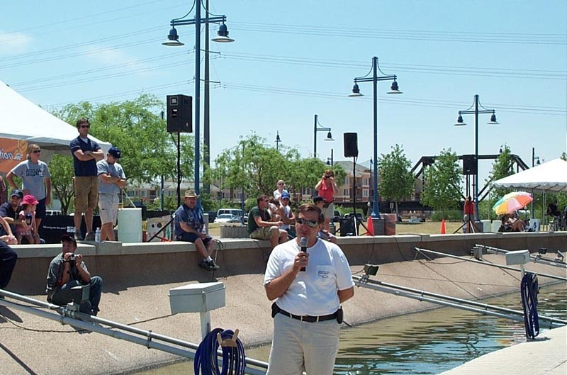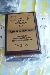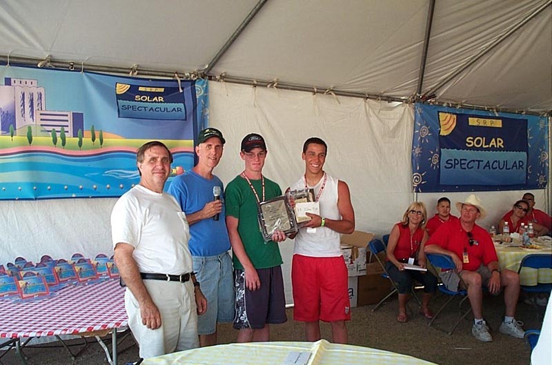 In its third year of competition, the SRP Solar Spectacular was a big hit at Tempe Town Lake! In a series of competitions over the spring, high schools build solar-electric boats from scratch, then compete head-to-head on the waters of Tempe Town Lake. This year, the Phoenix EAA sponsored the sprint races, offering plaques and prize money to the winners. The Phoenix EAA also had several EVs on display for the EVent.
